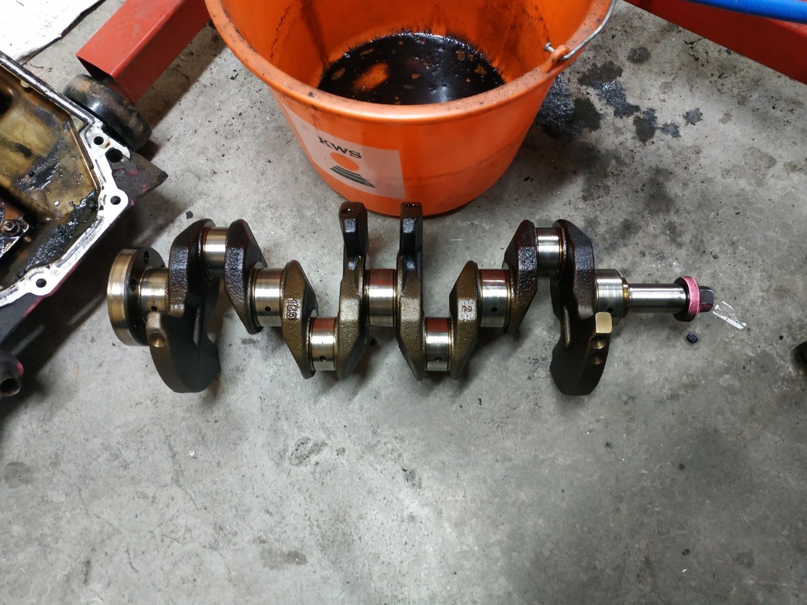 Wał lany, bez klinu dla zębatek rozrządu i koła pasowego, zamiast tego zastosowano podkładki cierne. Podpory wału spięte w jeden karter dla usztywnienia konstrukcji bloku.