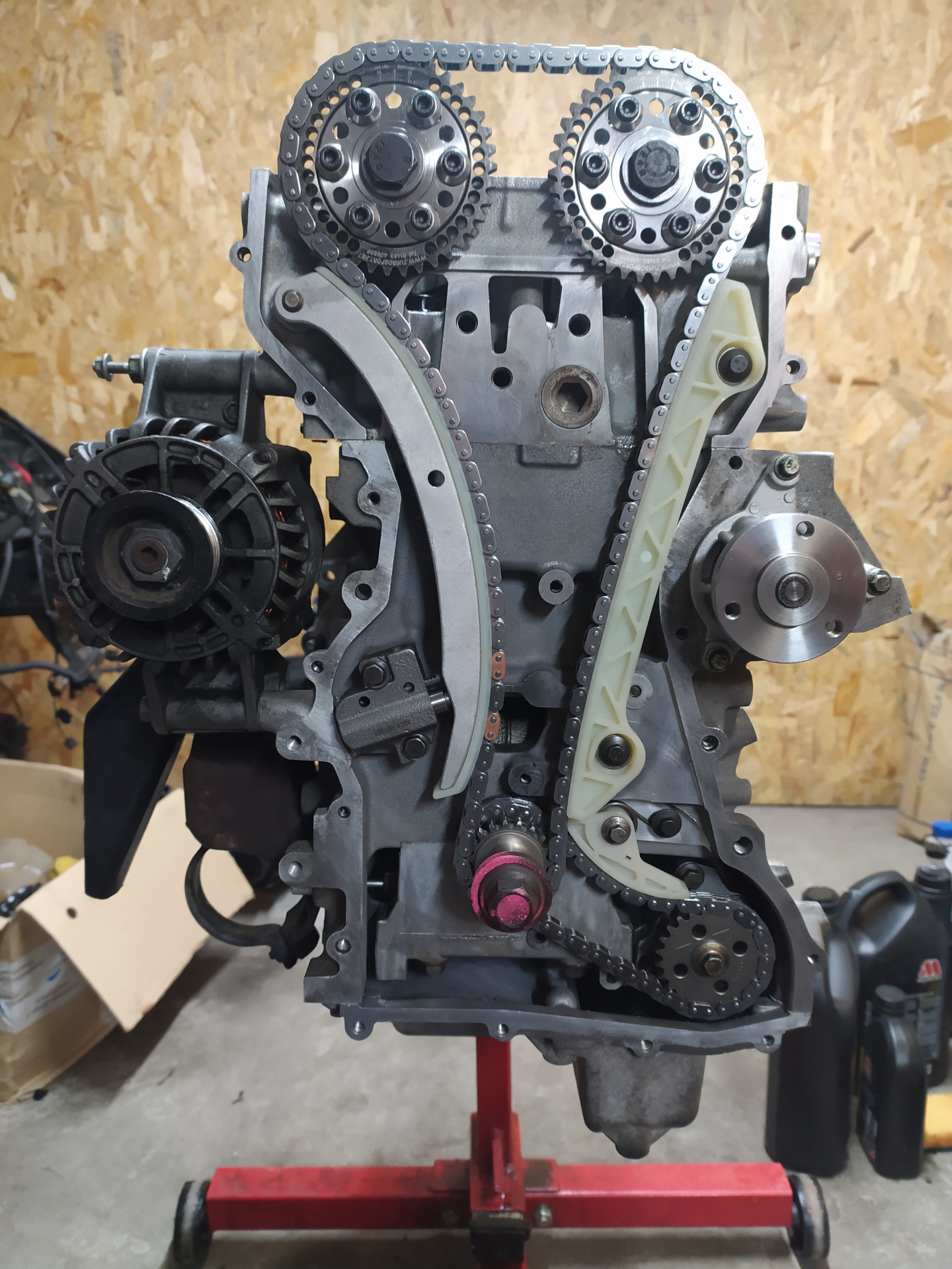 W tym celu zostało zmienione koło pasowe na takie z Focusa MK2 oraz miska z Mondeo MK4 2.3 - dzięki temu, będzie można przenieść kompresor klimatyzacji pod miskę olejową a w miejscu kompresora klimy będzie Rotrex.