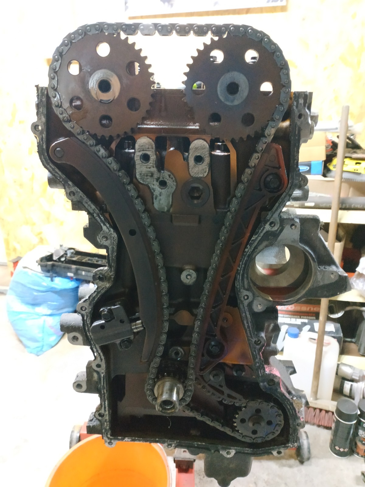 Rozrząd łańcuchowy, na 2 ślizgach z jednym napinaczem sprężynowo hydraulicznym. Pompa oleju napędzana osobnym łańcuchem z ślizgiem napinanym sprężyną.